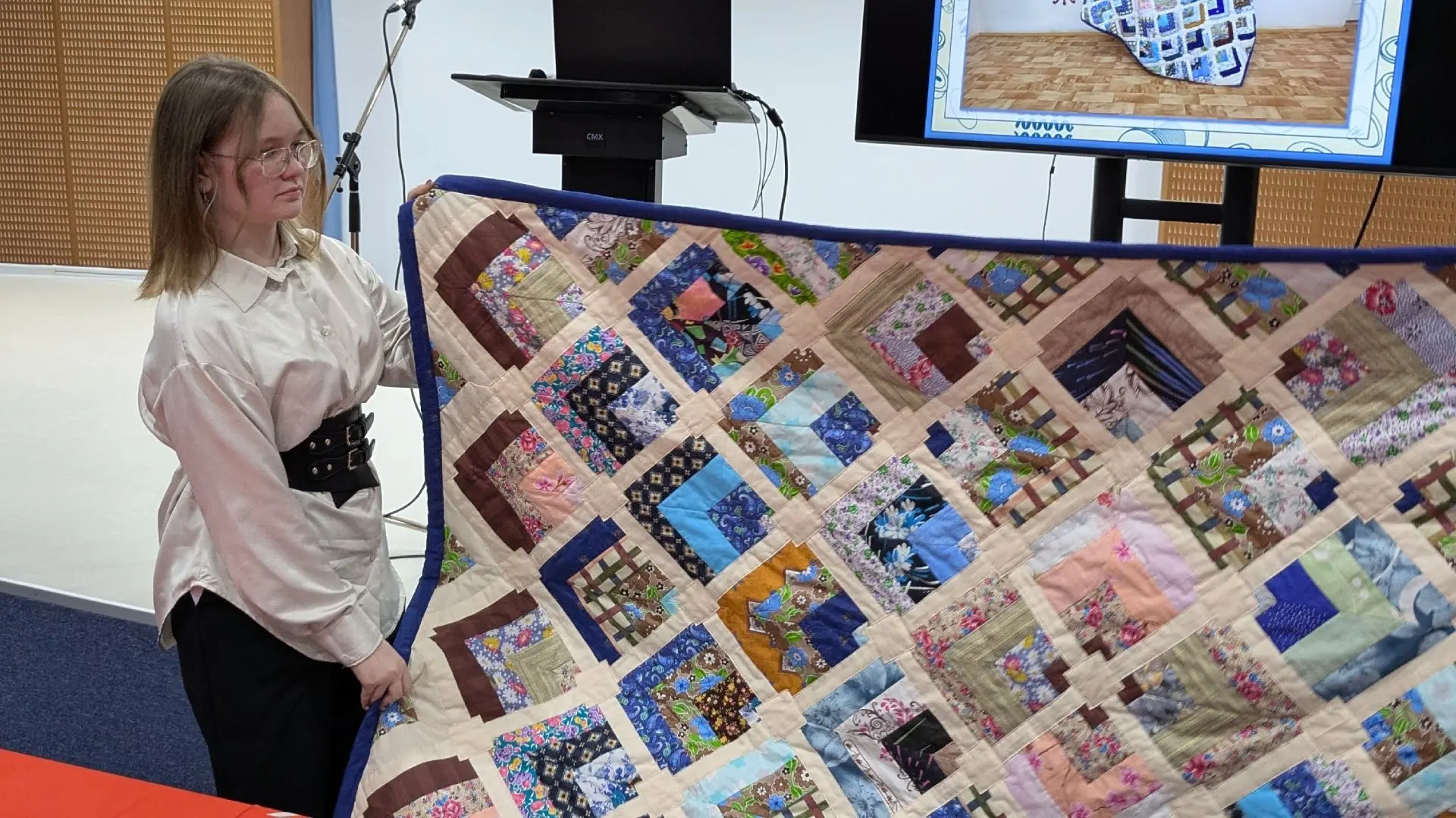 В номинации «Текстиль» выступила и Алиса Залесова из Кушвинского муниципального округа. На конкурсе она представила собственноручно сшитое лоскутное одеяло «Геометрия уюта».