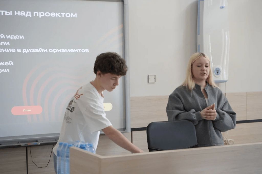 Старшие классы (9–11) разрабатывали робота-этнохудожника и сувенирную «Матрешку-Единства», средние (7–8) создавали шахматы в национальных костюмах и «браслет Дружбы», а младшие (5–6) моделировали рельефный «глобус» России и сувенирные брелоки.