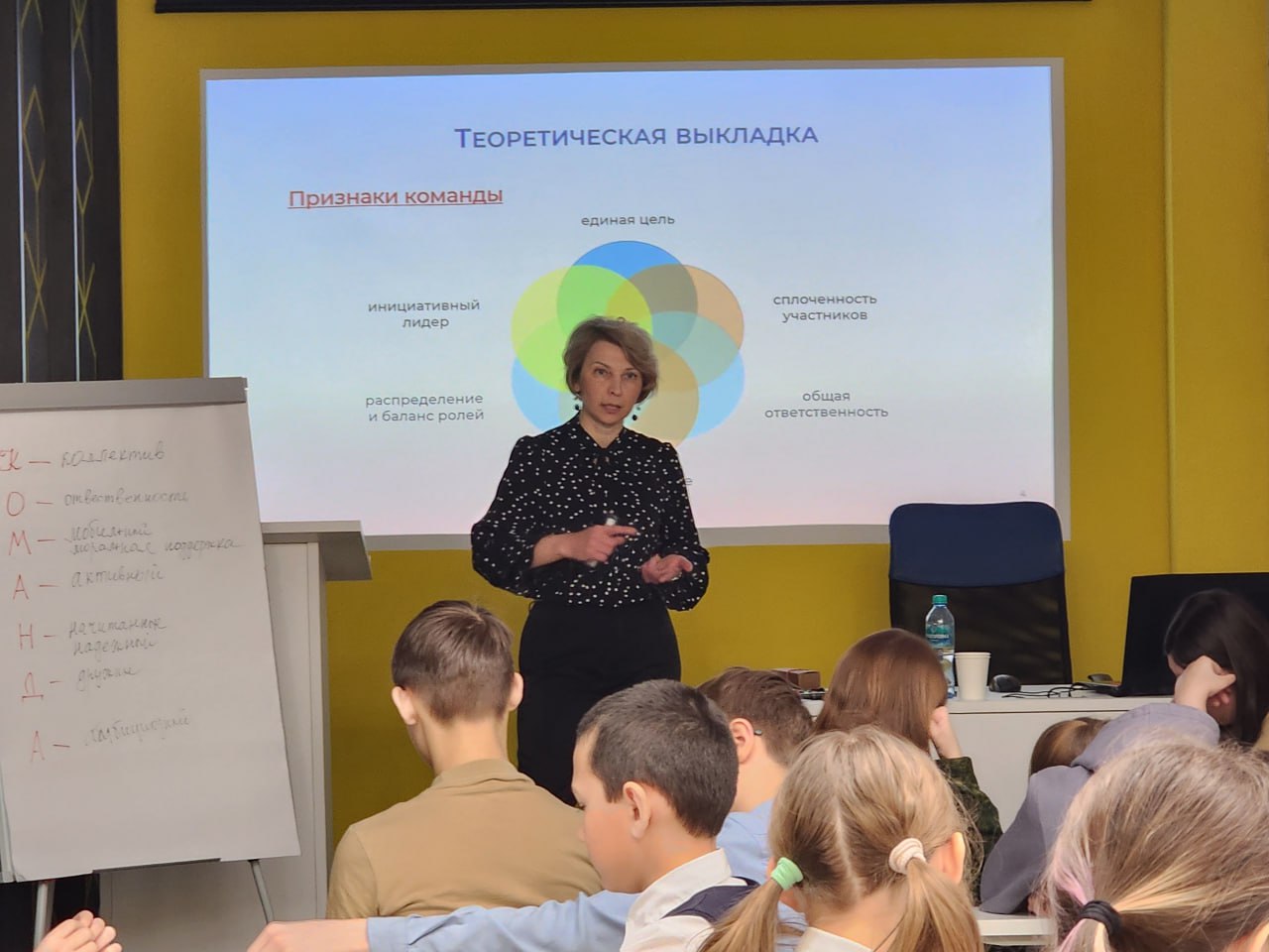 Участниками встречи стали обучающиеся 13–14 лет. Они узнали, какими бывают роли в команде и почему для успеха нужно выстраивать отношения и уметь слушать друг друга, получили практические рекомендации, как это правильно делать.