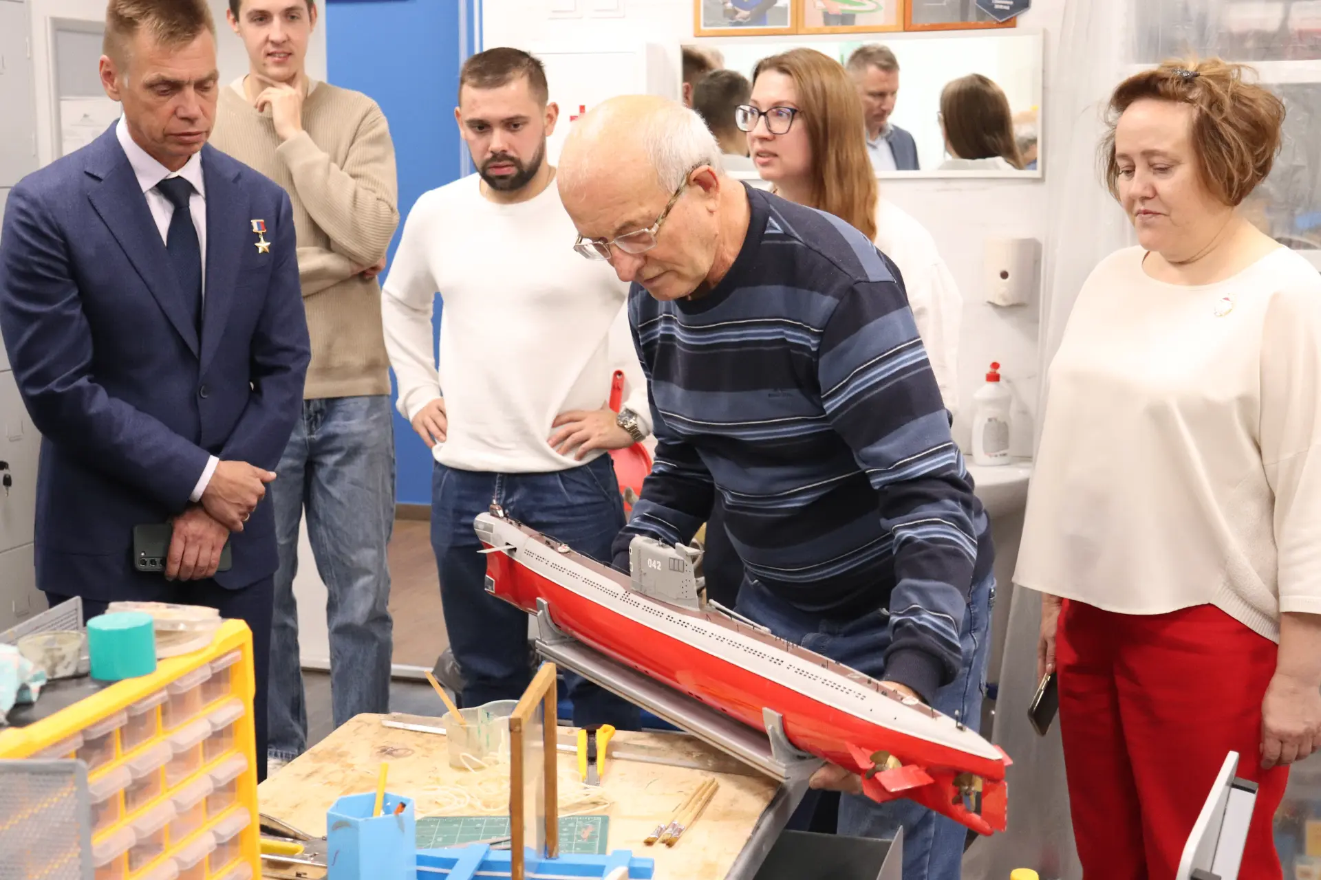 – В лаборатории судомоделирования всё достойно оборудовано для занятий с детьми – вытяжка, вентиляция, кондиционирование, верстаки. Всё нам Дворец молодёжи закупил. Есть доска, компьютеры, 3D-принтер, покрасочный кабинет, паяльные столы. Ребята используют токарные, фрезерные, сверлильные, паяльные, лазерные станки, изучают основы программирования и строительства моделей. Учатся работать по чертежам, осваивают токарное, фрезерное, сверлильное дело. Приобретают навыки работы с паяльником, готовят программы для лазерных станков. Когда программу составляют, включают компьютер, и станок вырезает нужную деталь для модели.