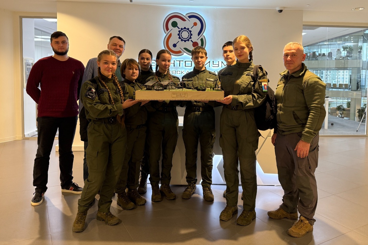 В завершение визита в «Кванториум» ребята получили символичный подарок — макет «Сражение на северном фасе Курской дуги», созданный обучающимся технопарка, победителями соревнования «Мейкертон».