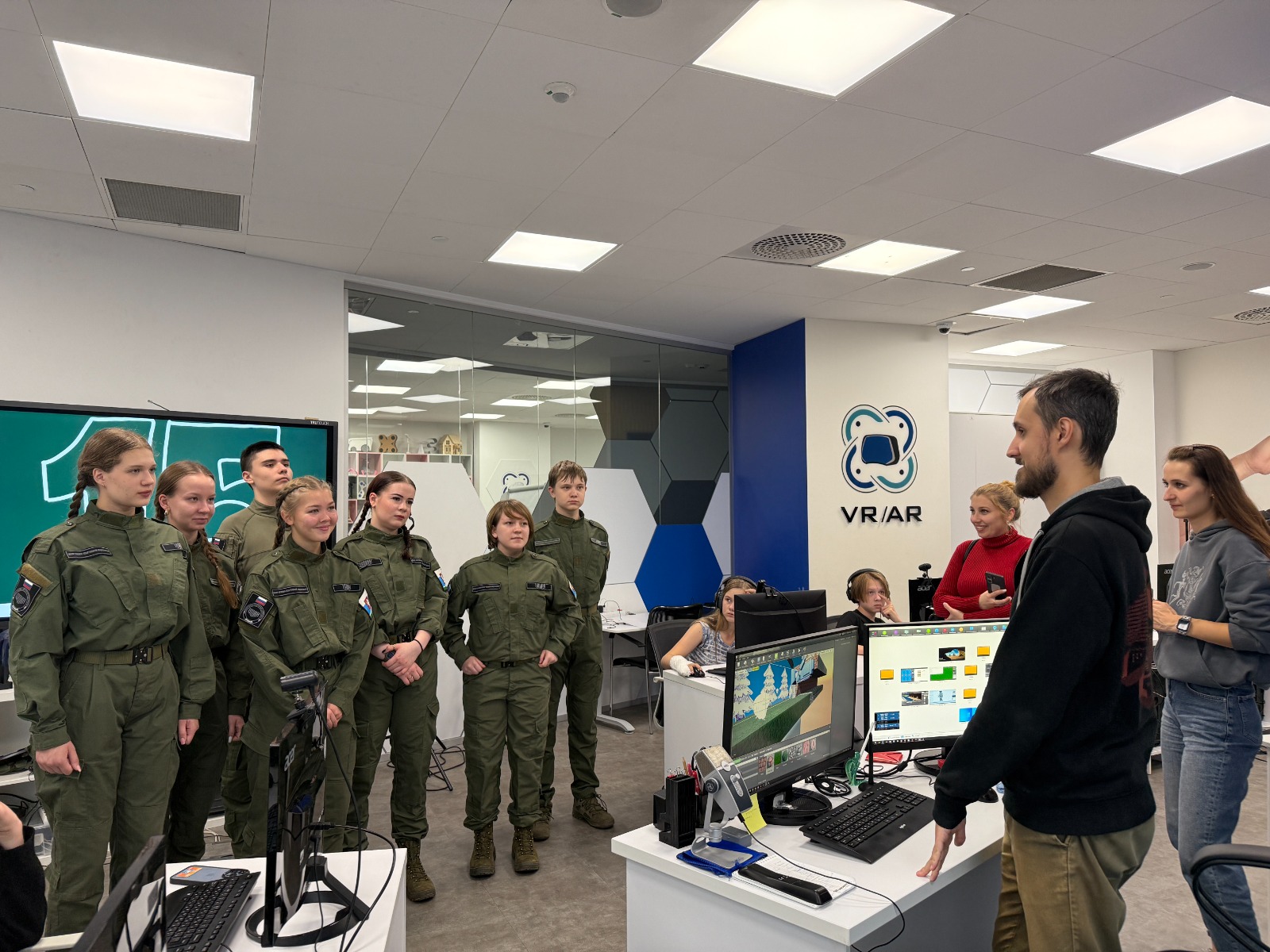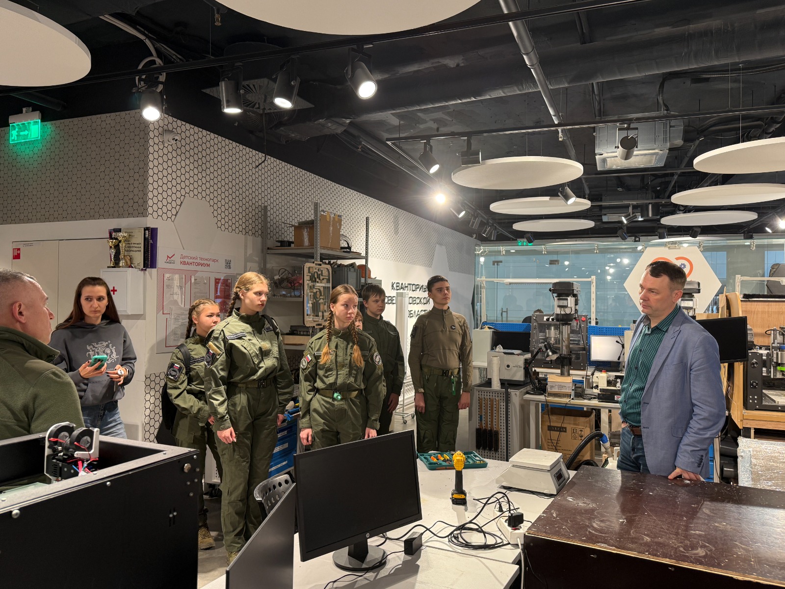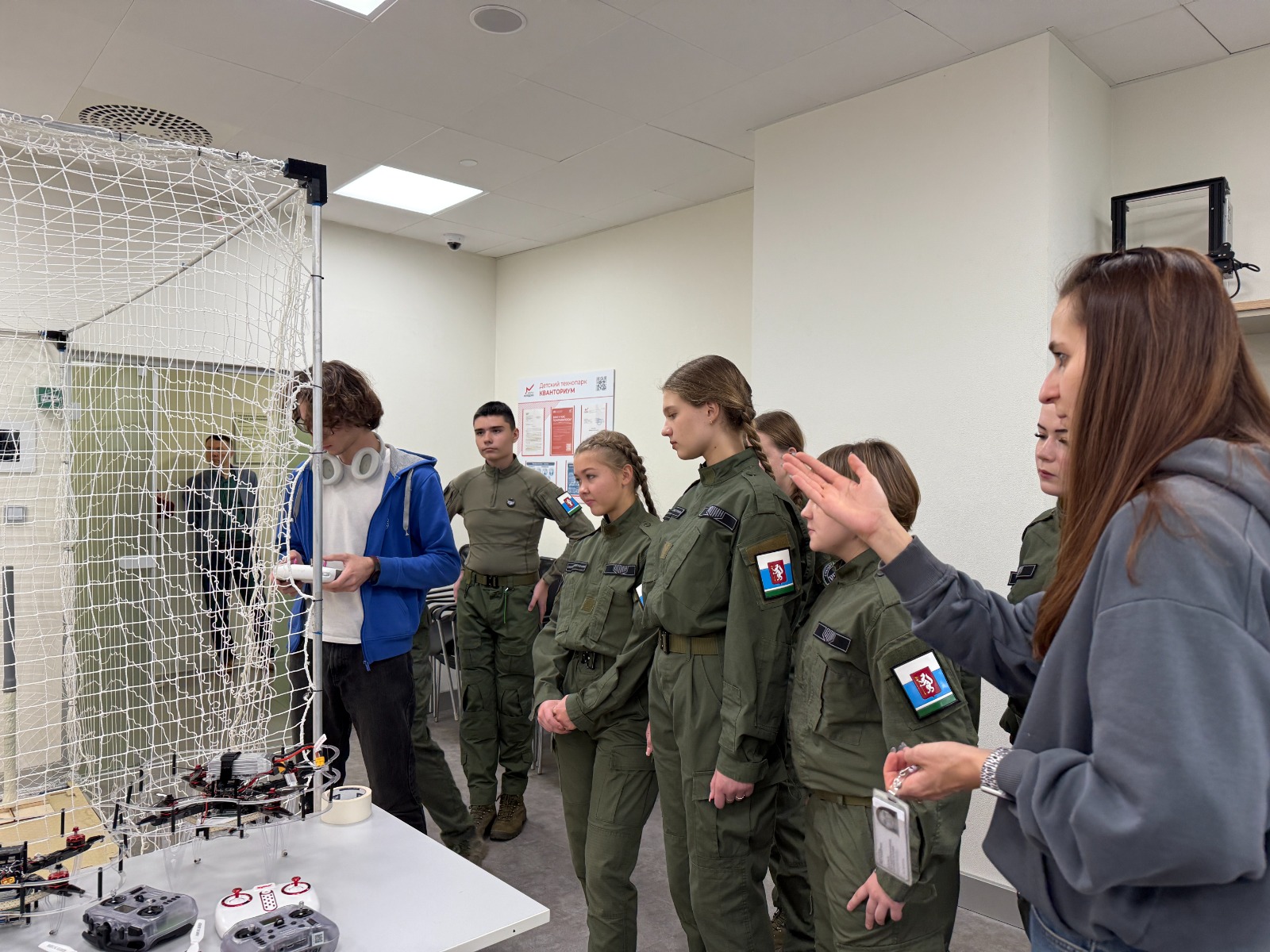 Школьники из центра «ВОИН» побывали во всех восьми квантумах технопарка: космо, IT, медиа, промдизайн, промробо, VR/AR, гео и хайтек-цех. Ребятам подробно рассказали об особенностях обучения и возможностях для развития технических компетенций. Особенно интересно им было на практических занятиях: в геоквантуме участники протестировали пилотирование дронов, в IT-квантуме – познакомились с приложением, разработанным обучающимися на платформе Arduino, а в VR-квантуме гости узнали, как создаются виртуальные миры и игровые проекты.