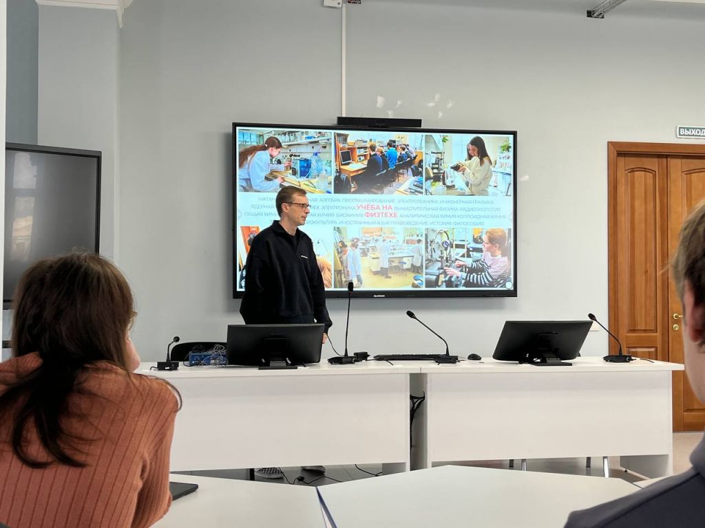 Мероприятие началось со знакомства с институтом и его направлениями подготовки. Ответственный секретарь отборочной комиссии физтеха Андрей Смирнов рассказал гостям о четырёх треках, в которых могут реализоваться выпускники ФТИ. Первый – образование, выбравшие его студенты смогут остаться на кафедре и делиться полученными знаниями с другими. Второй трек – бизнес, он позволяет монетизировать навыки, например, через запуск стартапа. Третий трек посвящён популяризации науки – сюда уходят те, кто готов вести просветительскую деятельность и рассказывать о сложных вещах простым языком. Четвёртый – собственно наука, здесь рождаются учёные и исследователи.