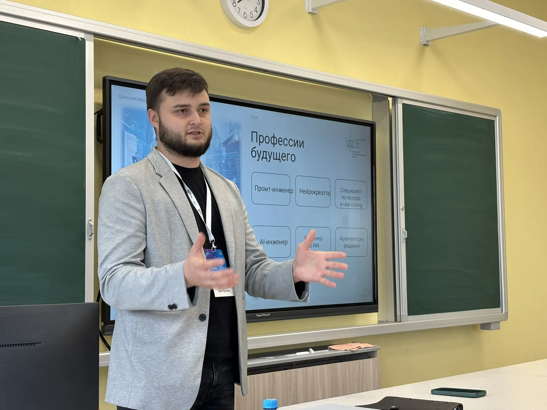 Сергей Викторович рассказал о профессиях будущего, где активно внедряются технологии искусственного интеллекта: промт-инженер, нейрокреатор, AI-инженер, инженер по ИИ-безопасности и архитектор решений. Точкой входа в эти профессии должны стать компетенции разработчика – знание математики и статистики, языков программирования, машинного обучения, а также базовые навыки: работа с цифровыми данными, формулировка запросов и алгоритмическое мышление. Именно такие компетенции осваивают ребята в детских технопарках «Кванториум». Школьники работают с классификаторами, разрабатывают дизайн и видеоарт, создают чат-боты, виртуальные доски и используют ИИ в инженерных проектах.